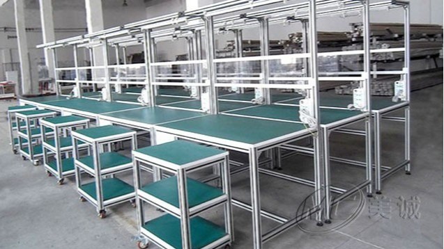 生產流水線工作臺是配合流水線使用的工作臺,可根據實際情況選取合適規格的鋁型材加工定制,廣泛應用于各種生產型行業。美誠鋁業10年專注于鋁型材制品的生產定制,嚴格檢控,產品均通過ISO、CE歐盟等國際認證。