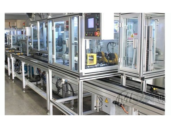 鋁型材機械防護罩是用工業鋁型材在設備外圍建立安全范圍防護措施,以劃分安全范圍,阻隔人或物與設備直接接觸,起到安全警示作用,常和報警及斷電設備配套使用。框架部分使用鋁型材,配合絲網、亞克力、PC等各類板材,通過鋁型材配件安裝膨脹螺栓連接鋁型材立柱和地面。